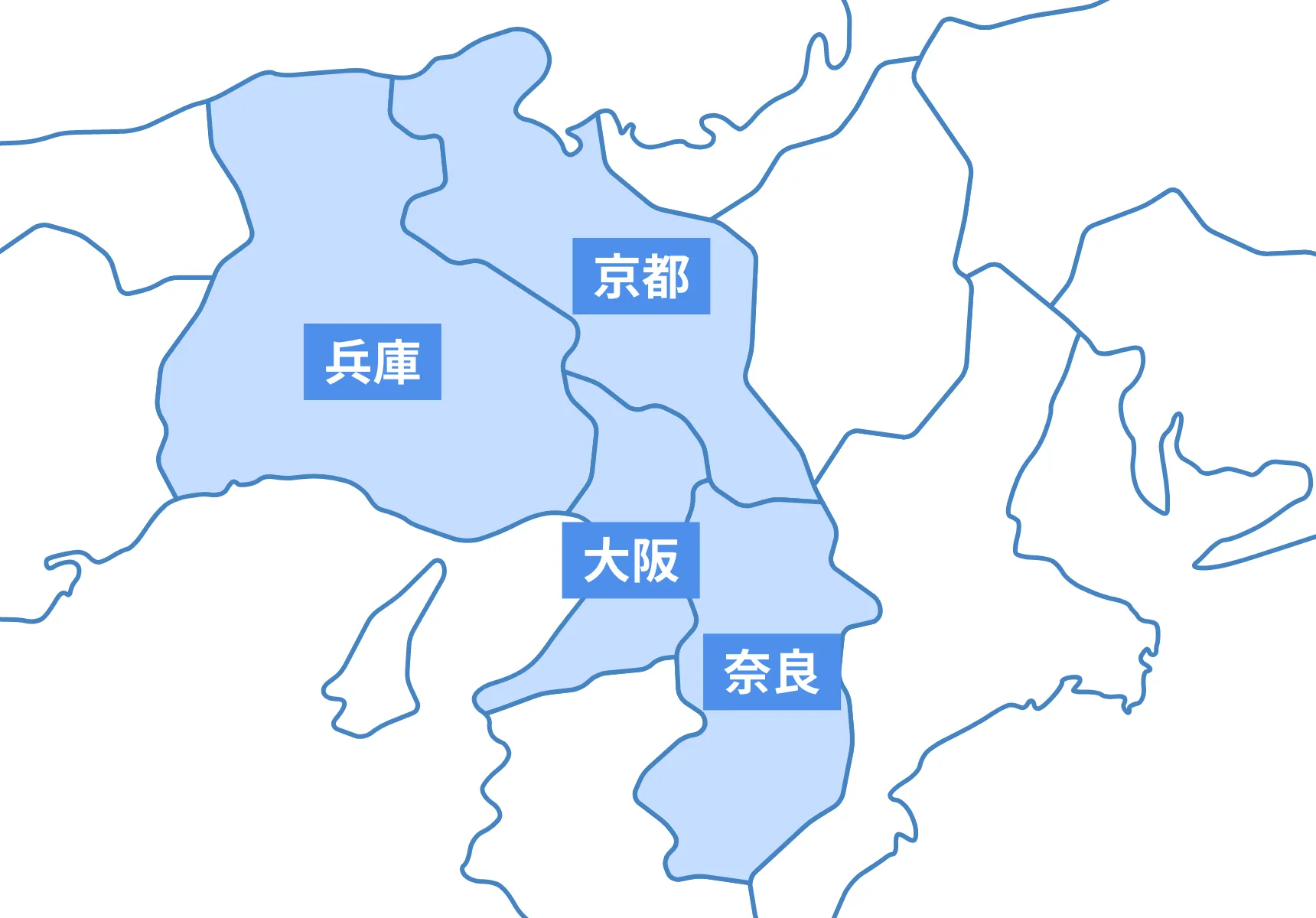 - 大阪市全域 / 池田市 / 豊中市 / 吹田市 / 守口市 / 東大阪市 / 八尾市 / 堺市 / 箕面市 / 茨木市 / 高槻市 /摂津市 / 枚方市 / 寝屋川市 / 交野市 / 門真市 /四条畷市 / 大東市 / 松原市 / 藤井寺市 / 柏原市